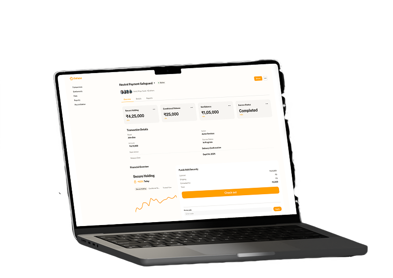 Manage everything from account setup and fund flows to trusteeship and disbursals within one platform. Built to offer ease, control, and security, it eliminates coordination gaps and simplifies complex escrow operations end to end.